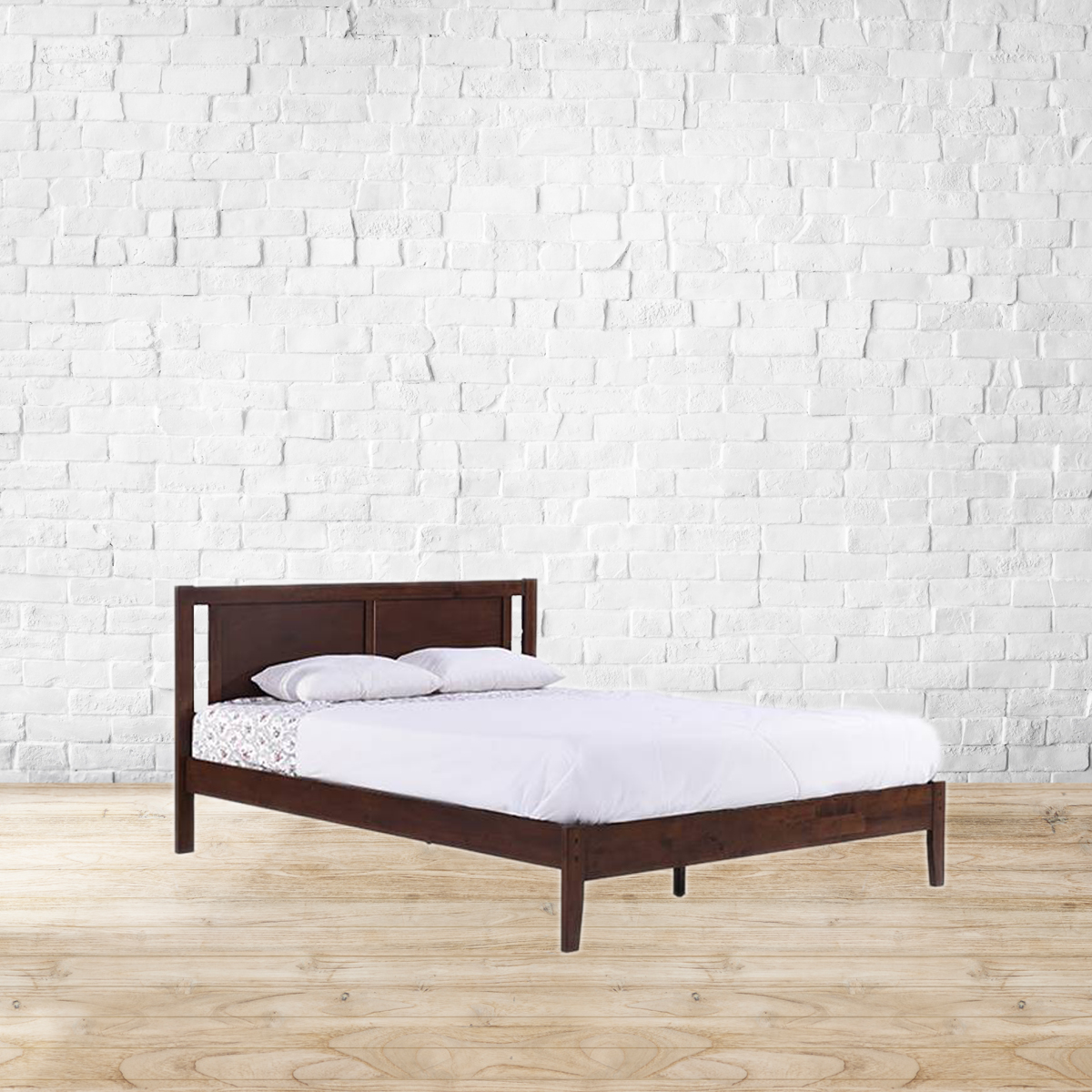 Sleep fortress. The open panels on the headboard and subtly tapered legs elevate the Brandenberg bed from simple to sophisticated. Ideal in a contemporary bedroom setting, its less-is-more approach is hard to go wrong with. Made from Rubberwood, MDF and Veneer.MDF board to support the mattress. Please refer to images for dimension details. For indoor use only. Note: Mattress and other accessories not included, unless specified otherwise.
