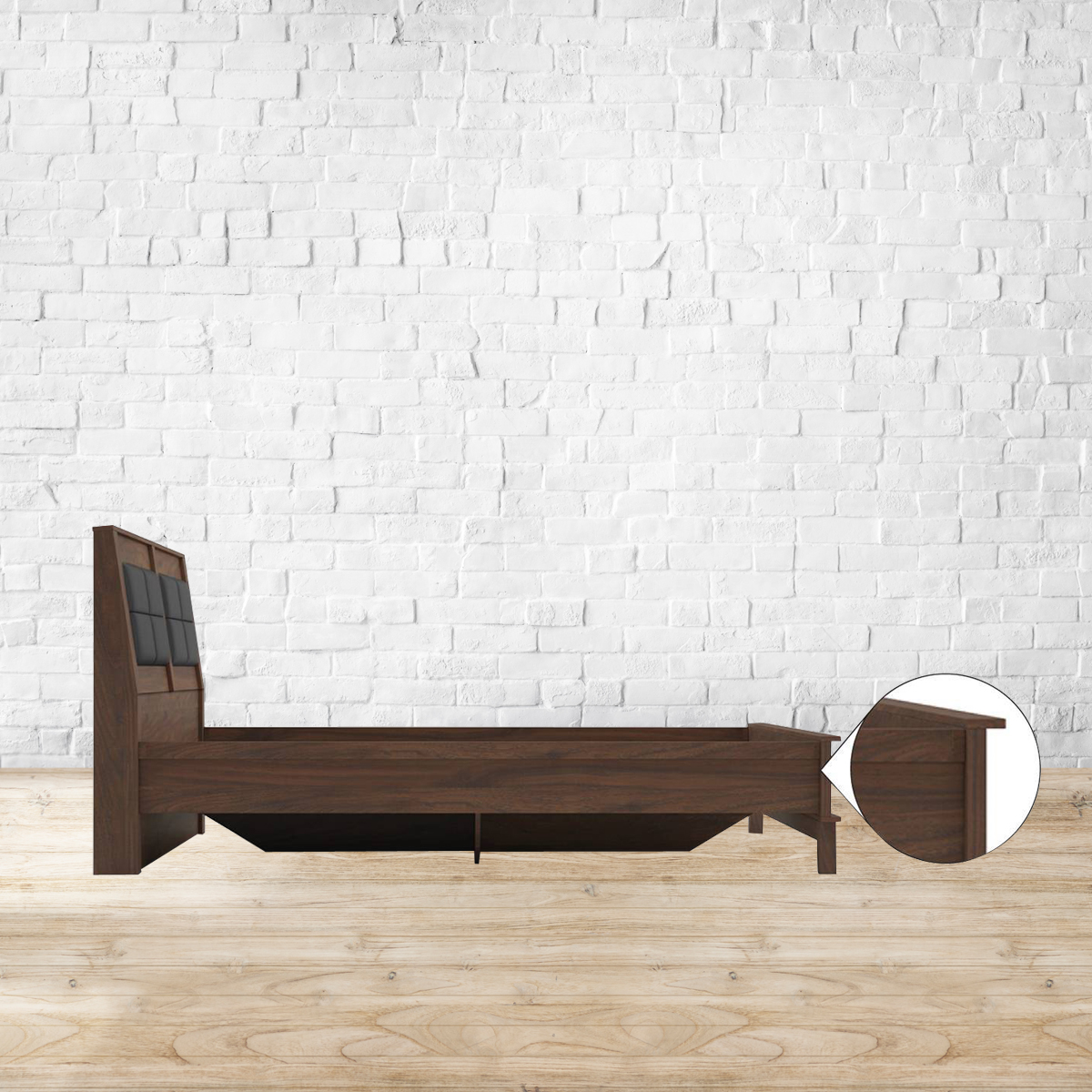 Sleep on this. Here’s a trim bed that’s stylish and functional. The Pico’s neat lines and classic finish are for fans of subtlety. Its upholstered headboard makes sitting up in bed more comfortable. And its understated design details allow you to accessorise freely as you like.Made of particle board in a walnut finish.Upholstered headboard.Recommended mattress size: Queen - 78" x 60".Please refer to the images for dimension details.Indoor use only.Note: Mattress and other accessories not included, unless specified otherwise