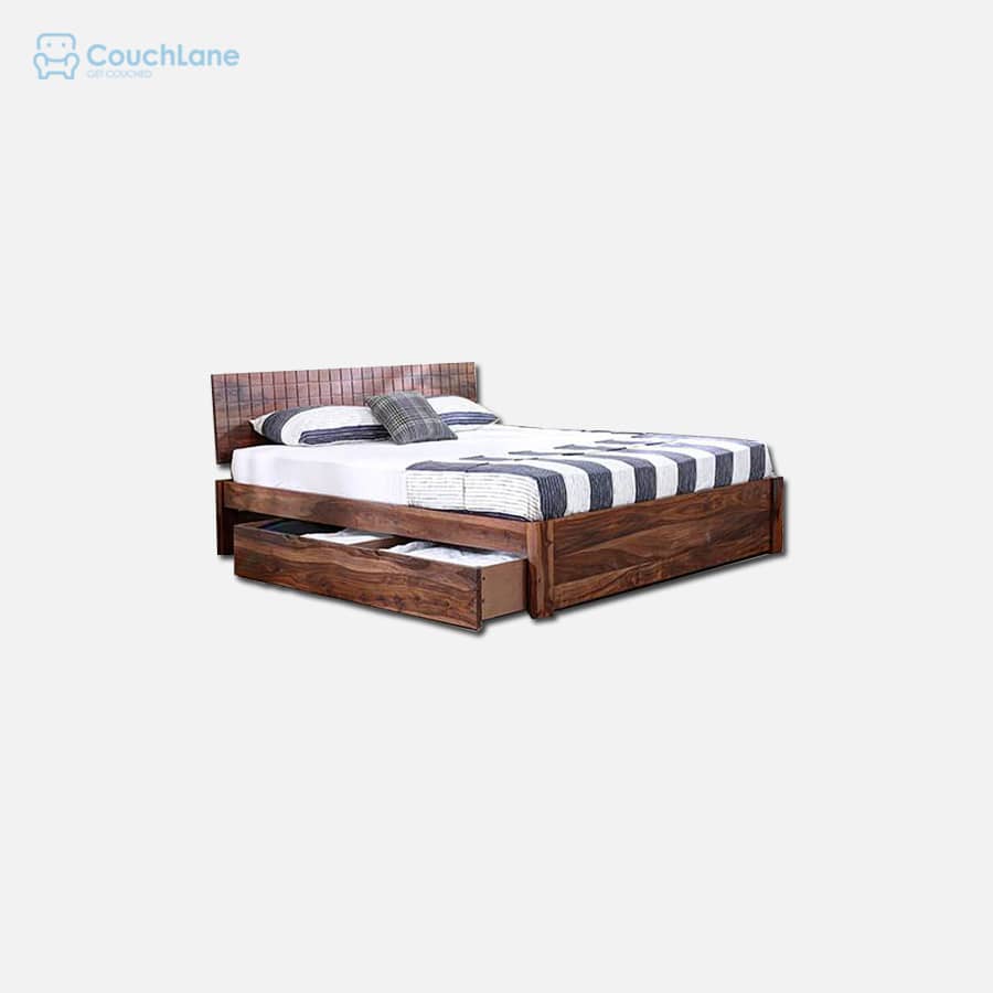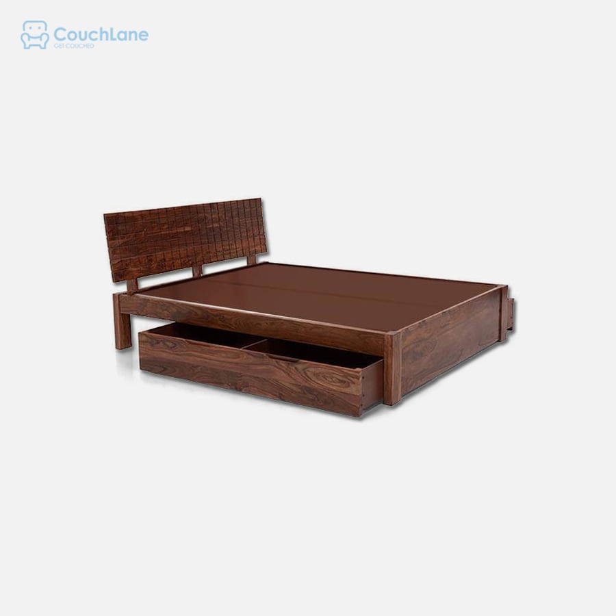 The versatile Valencia Storage bed is the perfect combination of style and practicality The carefully crafted checkerboard pattern of the headboard contrasts perfectly with the simple style of the bed frame Whether it's the extra pillow covers or cushions, or your collection of bed sheets, the two large drawers are the answer to all your storage needs The storage drawers have 6 sets of unidirectional castor wheels which distribute weight and roll smoothly in and out, without changing direction Ideally accommodates a 5 inch mattress but can also accommodate mattresses between 4 and 6 inches Headboard is made of high grade Sheesham wood.Mattress board made from 12mm MDF board. Indoor use only Bed prices do not include mattresses and other accessories