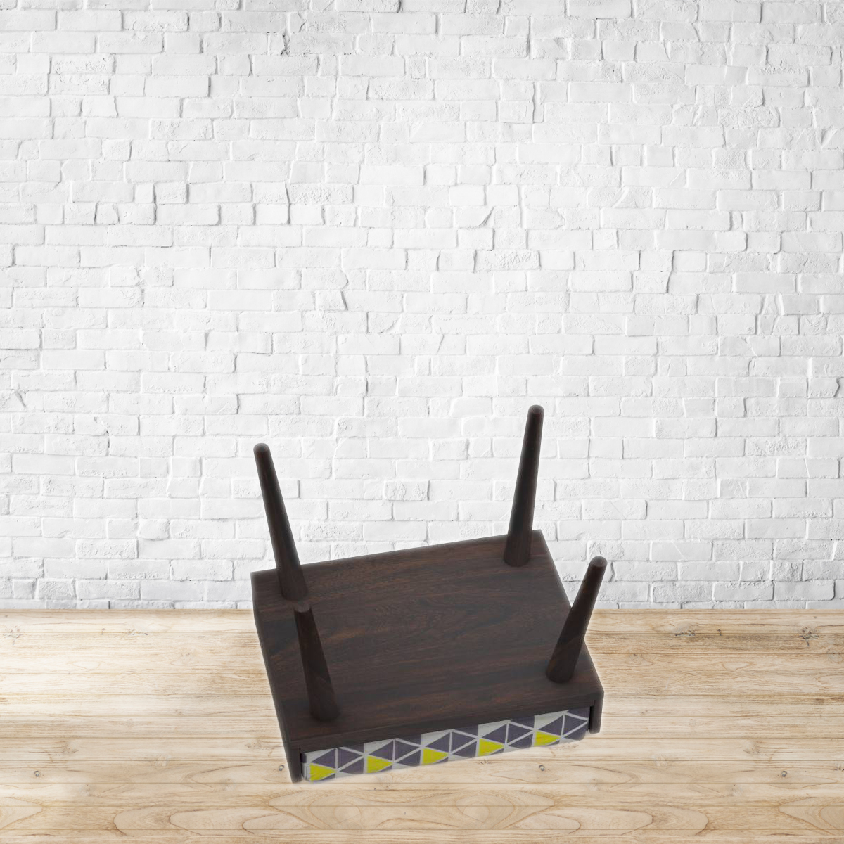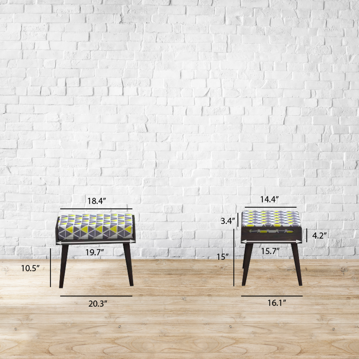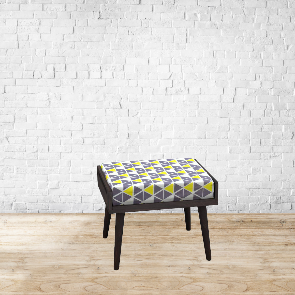 Sitting pretty. Mid-century modern aesthetics team up with playful prints for the Alai pouffe. Perfect as a low seat in the living room, it easily doubles up as a footrest. With a hand grip on either side, this lightweight stool, can be moved from room to room to follow the party. Made from Sheesham wood.Fabric upholstery. Please refer to images for dimension details. For indoor use only.