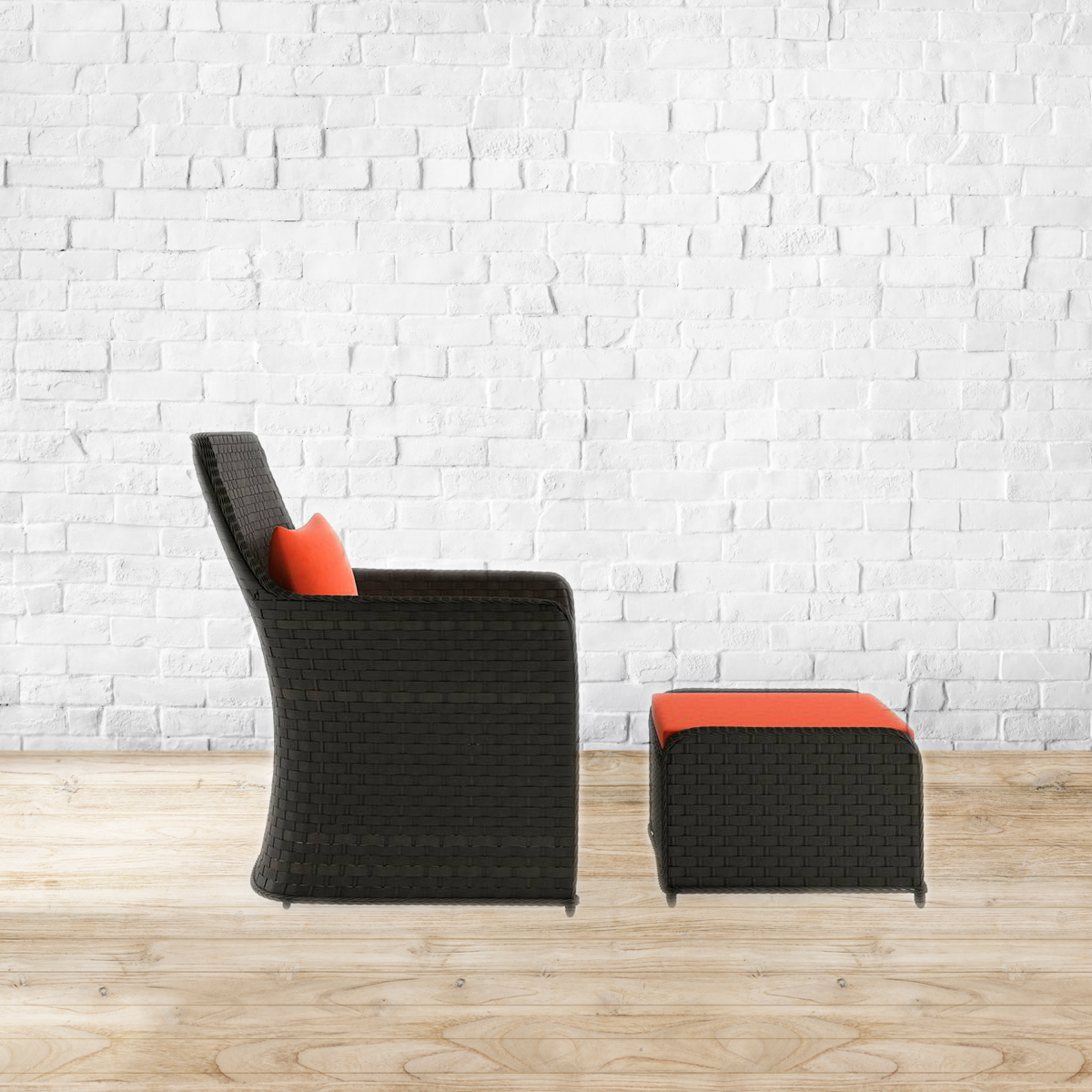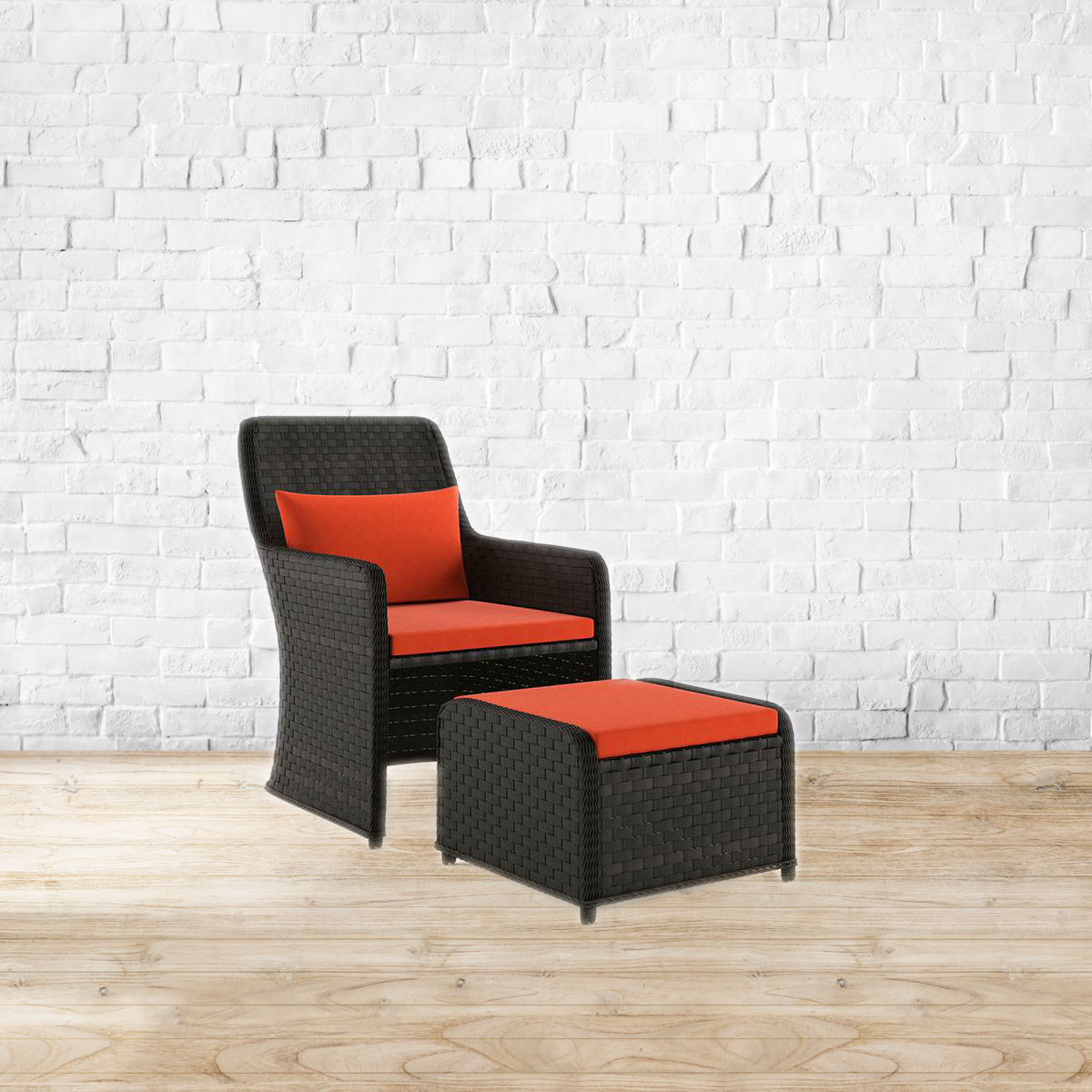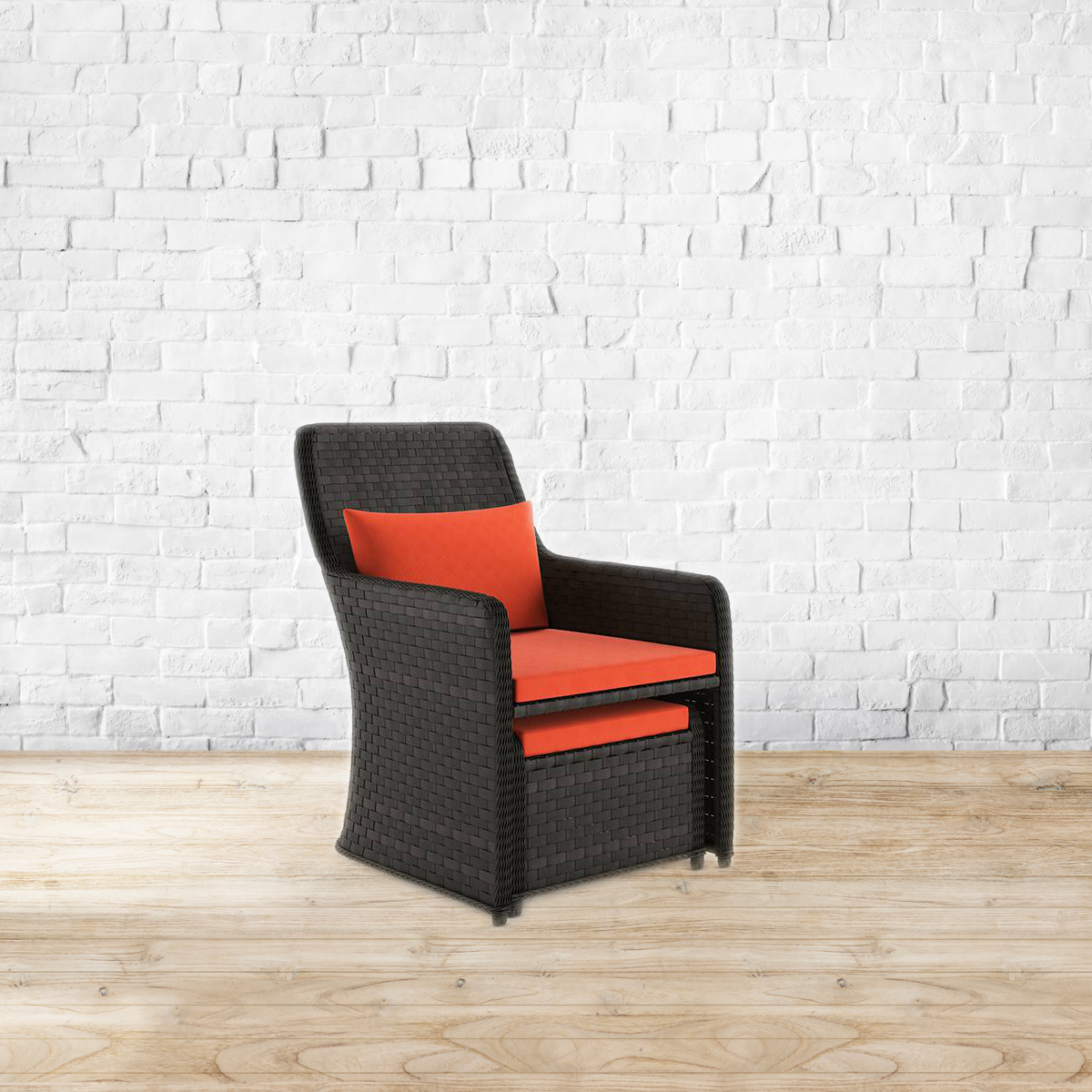 On the roof, in the rain. The Bentham patio chair and footstool were made for the outdoors - i.e. your terrace or balcony. Enjoy basking in the sun or soaking in the rain? Then this weatherproof combo was made just for you!. Frame made of aluminium tube. Seat and back made of PE rattan. Please refer to images for dimension details.