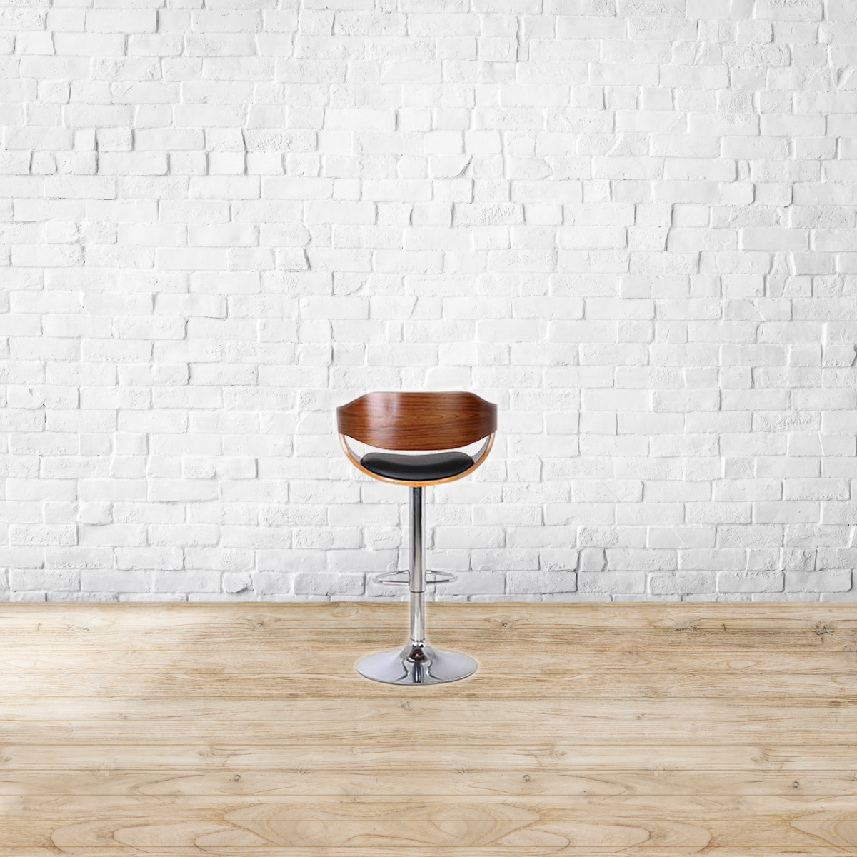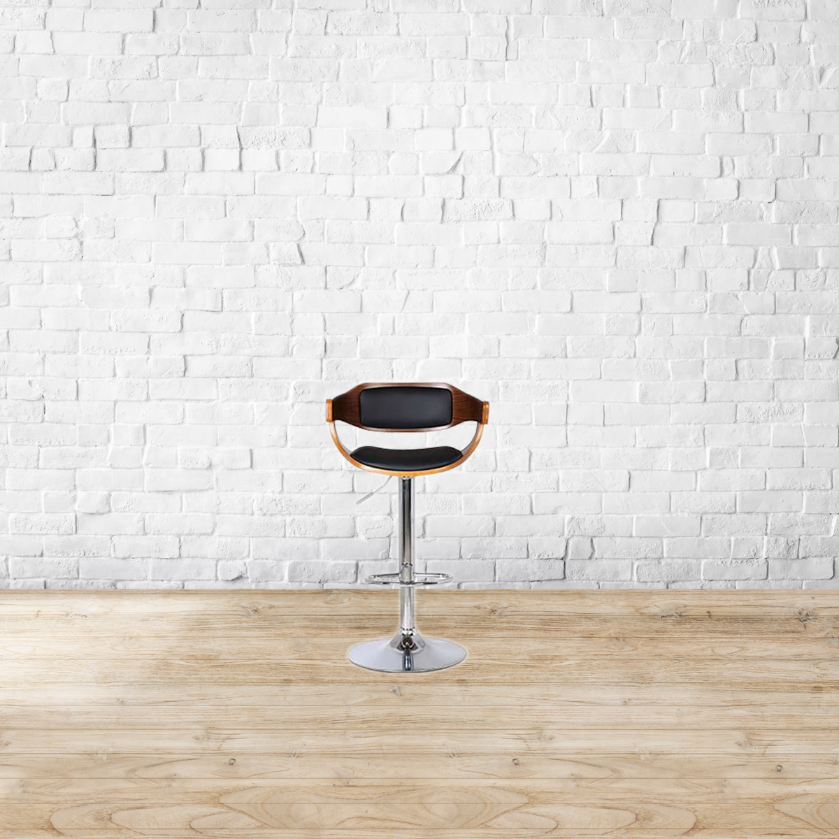Curved comfort. Slender and elegant in form, the Chumley barstool is a compact and comfortable perch. The well-defined armrests, the sculpted profile and plush leatherette seat make this stool perfect for lounging. Lightweight, you can move the stool easily from kitchen counter to the bar if needed. Plus, the footrest is placed just right, making it easy to hop on and off the stool.Height adjustable, the barstool is ideal for a dining, bar and kitchen environment. Seat and back frame made from plywood. Metal base. Soft foam cushion covered in leatherette upholstery. Height adjustable with swivel mechanism. Please refer to the images for dimension details. Indoor use only.
