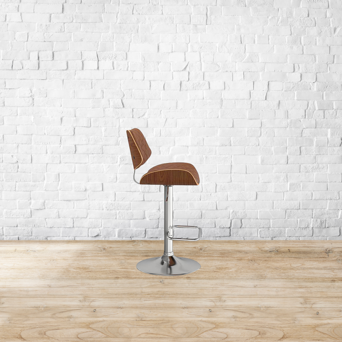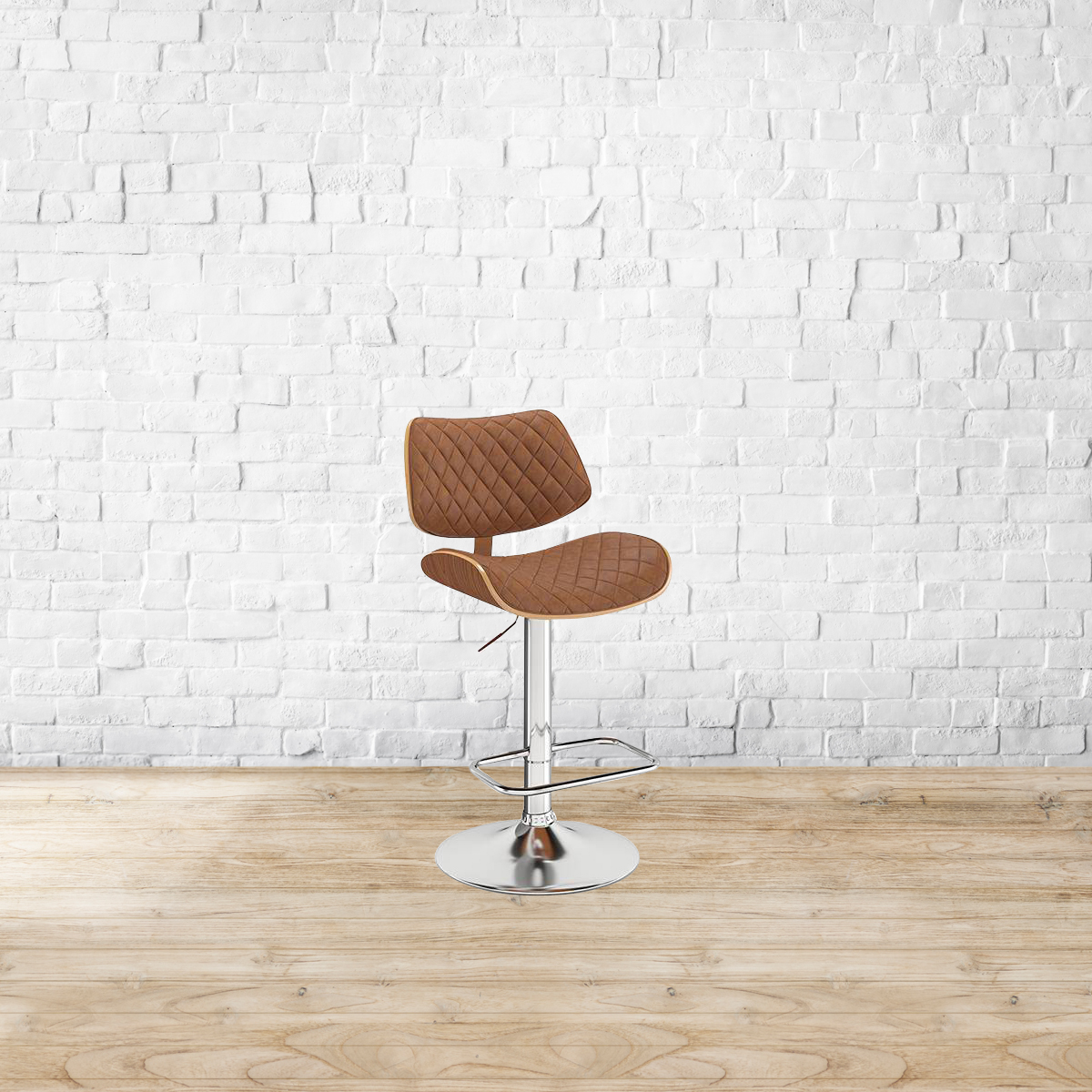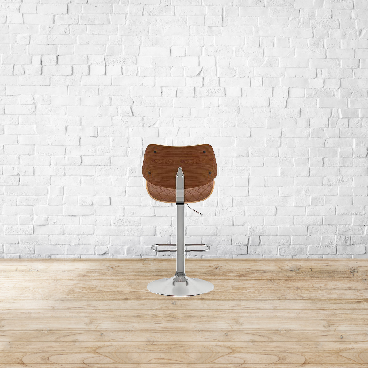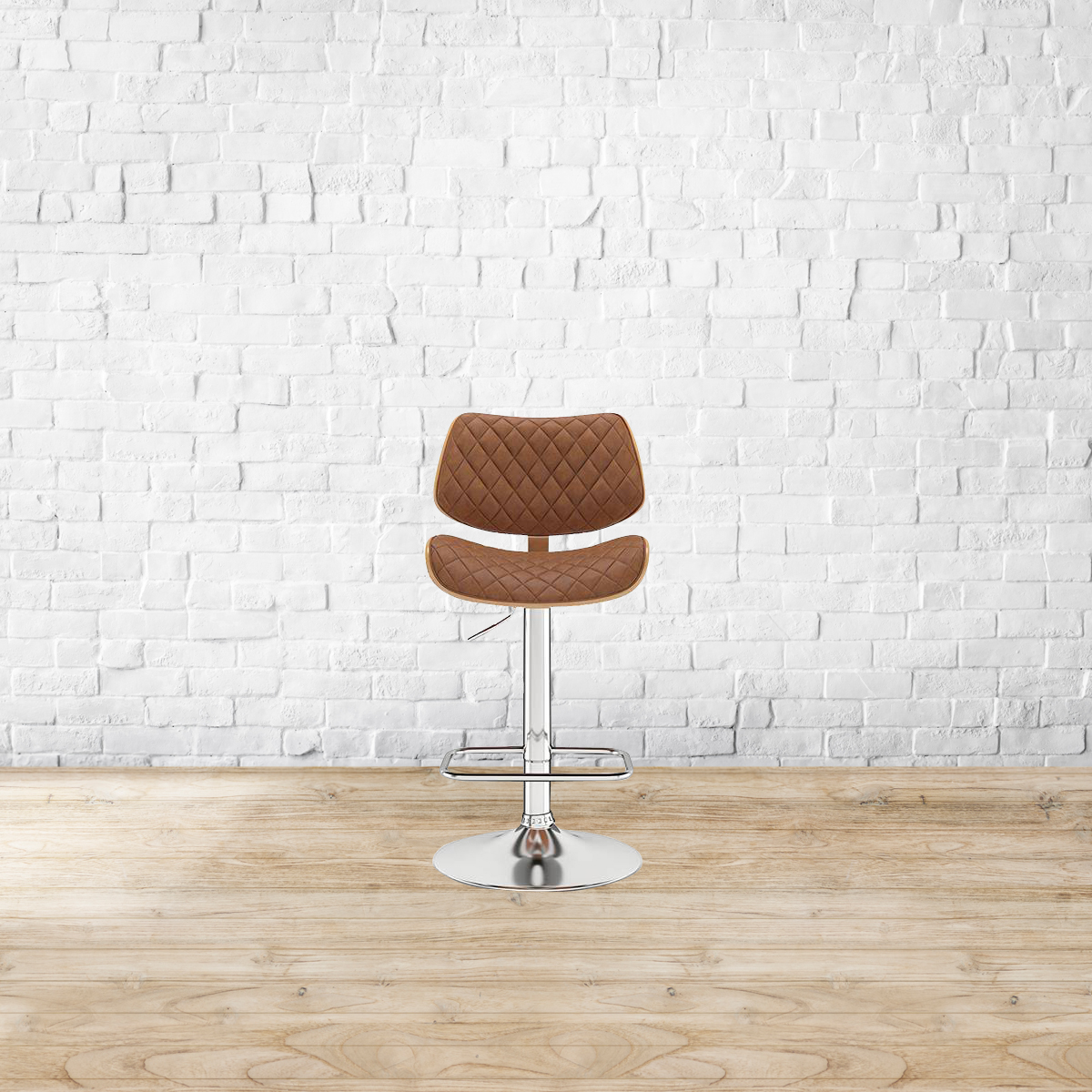 A party to good times. The Colin is just what the doctor ordered for a laidback pick-me-up over the bar counter. Swooping curves in plywood and leatherette are offset by the metal base. The gentle curvature of the back and seat are designed for easy lounging. The chestnut brown upholstery is perfect for the tasteful of mind. Seat and back made from plywood. Metal base. Soft foam cushion covered in leatherette upholstery. Height adjustable with swivel mechanism. Please refer to the images for dimension details. Indoor use only.