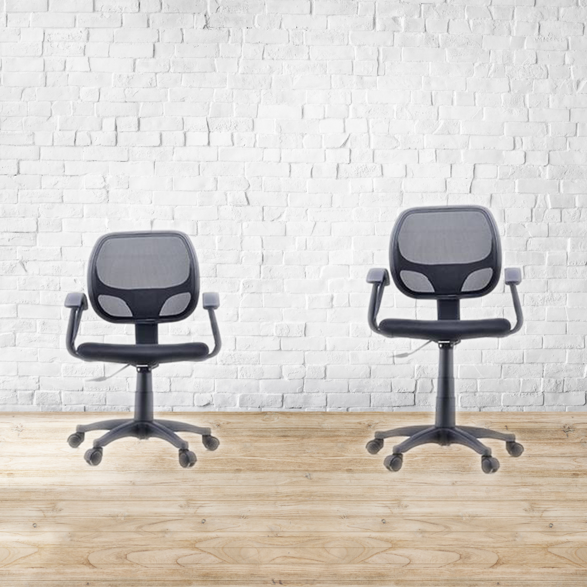 A study in simple. The Eisner study chair has a firm foam cushion, which makes long hours at your desk comfortable. The flexible meshed back is designed for air-circulation and support when you lean back. The curved arms provide ergonomic forearm support. Adjust the height using the gas lift to find that comfortable position, and the the nylon castors make it easy to move around your space. Chrome legs. Refer to the images for dimension details. Indoor use only.