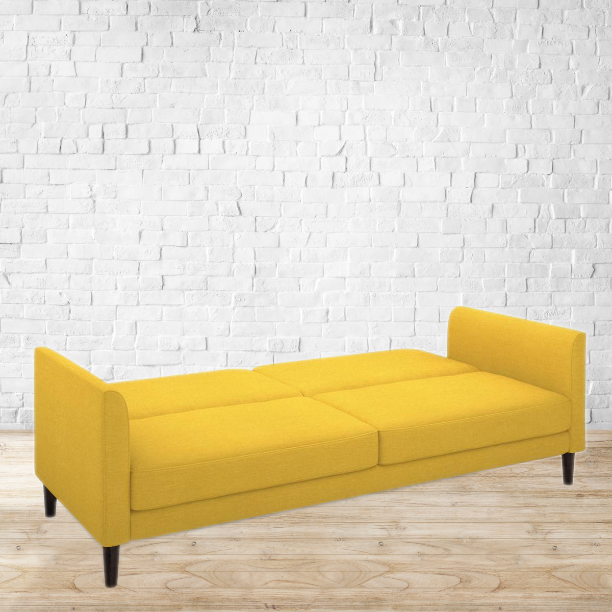 Induces yawns. In a good way. Plush and comfy, the Felicity is every insomniac’s dream come true. A gentle push turns it into an inviting single bed. Perfect for small apartments and sudden guests. It’ll sit pretty in your living room. Made of eucalyptus wood. Foam cushioning. Fabric upholstery. Upholstery available in 3 colours. The yellow and grey variants have a flat weave, while the cream variant has a plush, textured weave.. Click-clack mechanism for ease of use. Please refer to the images for dimension details