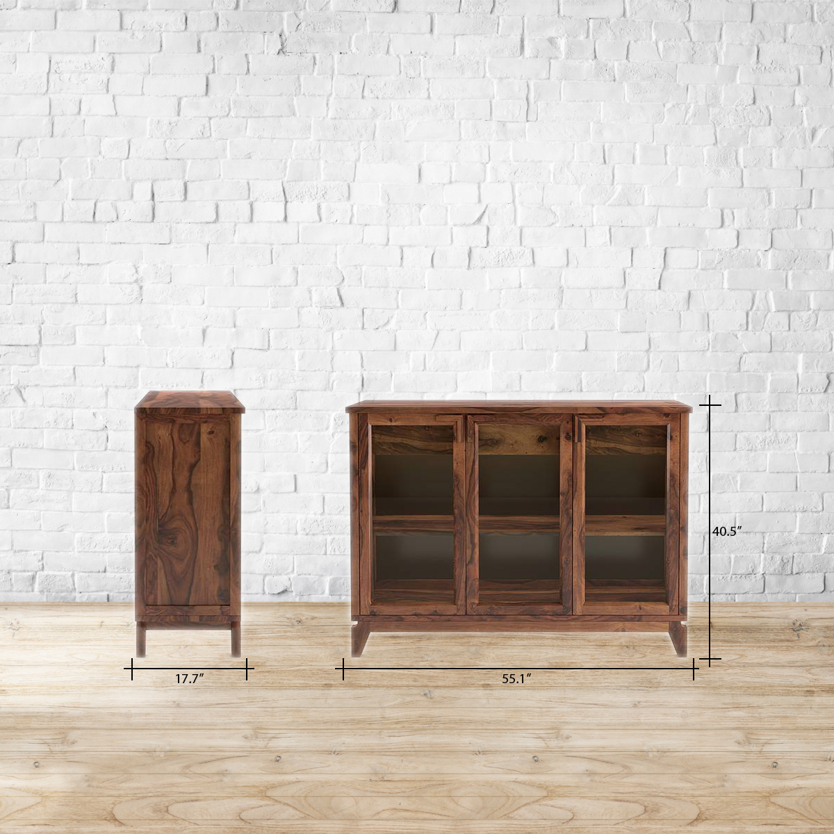 You call it a cabinet, we call it the perfect display. The Akira features a sleek glass front, held together by warm sheesham wood. The perfect home for your museum-worthy china, it also doubles as a serving station. Made from sheesham wood and glass, with acacia wood shelves.Available in 2 finishes. Available in 2 sizes. Please refer to the images for dimension details. Indoor use only.