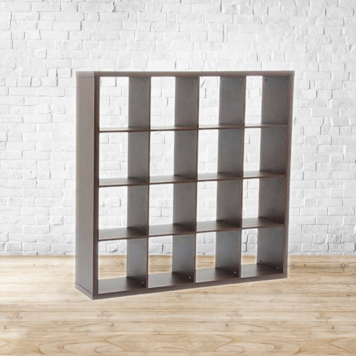 Storage cubed. The Boeberg bookshelf's stark geometry speaks of its singular purpose - providing ample, versatile storage. The open shelves serve as a blank canvas for the things you choose to display, while the drawers and cabinets house the treasures you choose not to display. Dark walnut finish. Made of high quality MDF and particle board, with wood finish laminate surfaces. Please refer to the images for dimension details. Indoor use only.