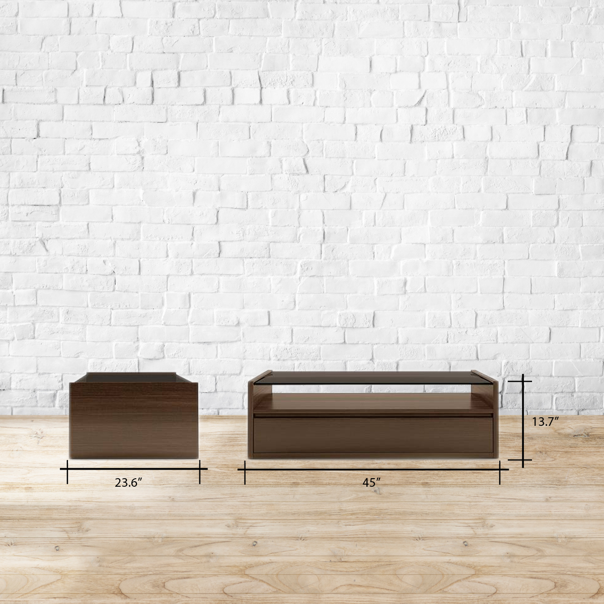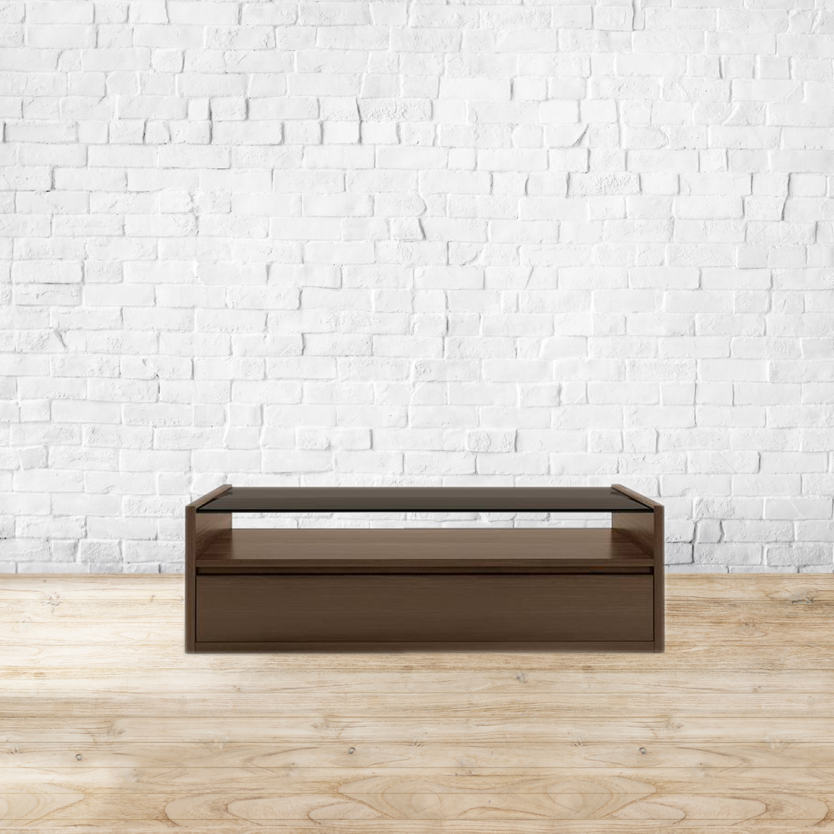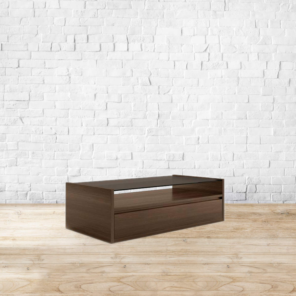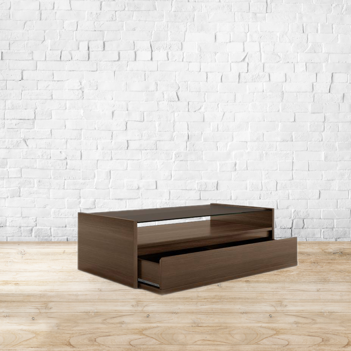 Got the munchies? Stretch out a lazy hand to the Alita. Friend to hardened between-meal snackers, the Alita storage coffee table comes with ample space to hold your nibbles. With full-drawer, half-drawer and open-shelf variants, there’s one for every kind of couch potato. Made from particle board and glass. Dark walnut finish. Please refer to images for dimension details. Indoor use only.