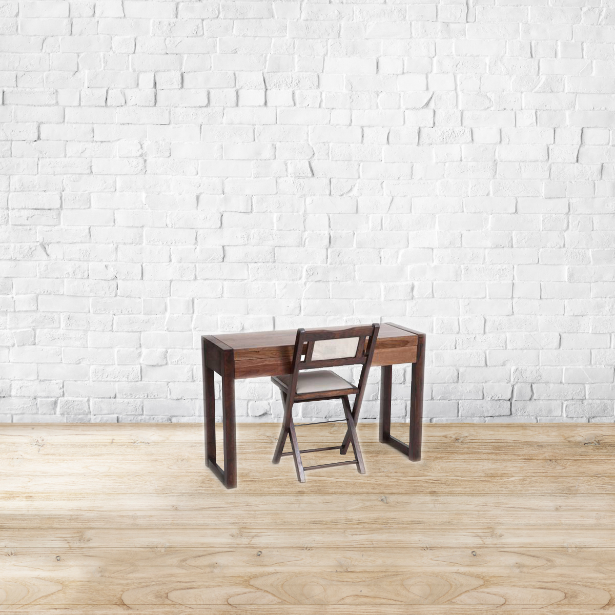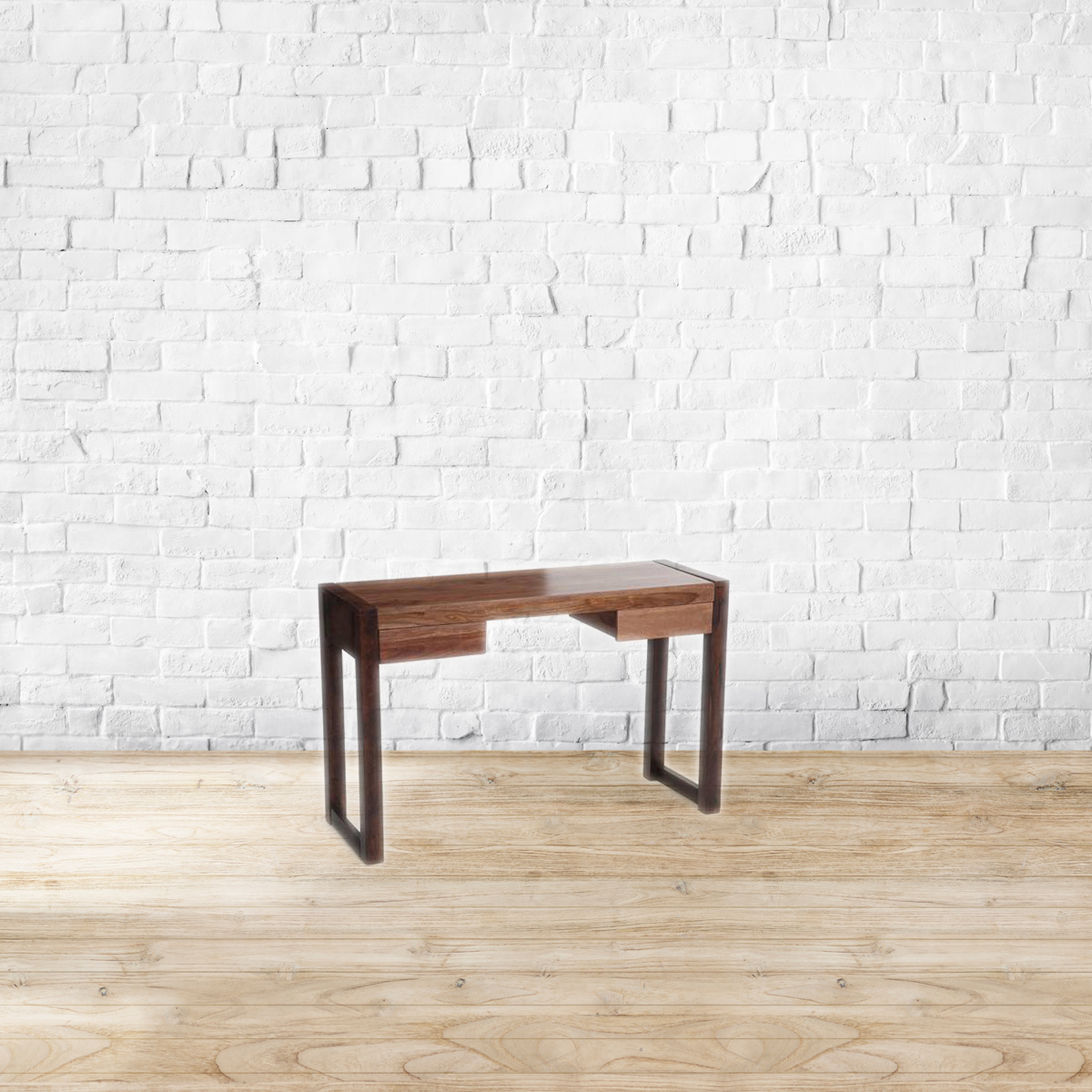 Sturdy two drawer study/console table.The slim proportions and simple design can fit into any kind of work/study space. The ample surface and drawers make it an ideal desk for students and professionals alike. Can also be used as a conventional console table with storage. Made of high grade Sheesham. Refer to the images for details of dimensions. Indoor use only.